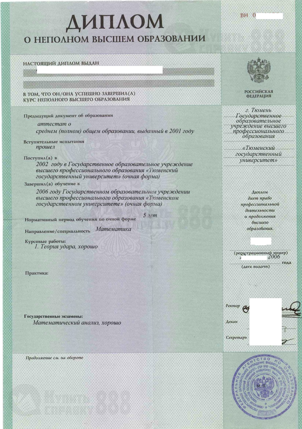 Ну и чтобы вы сами могли убедиться как выглядит диплом или справка о неполном высшем приведу тут образец: